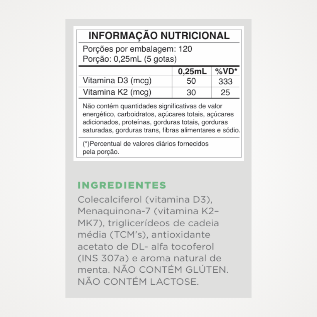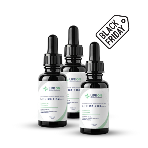 A vitamina D3 promove a absorção do cálcio, enquanto a vitamina K2 MK7 direciona o cálcio para os lugares adequados, prevenindo calcificações inadequadas. Além disso, o Life D3+k2 é formulado com o mais puro TCM, o que garante máxima absorção.